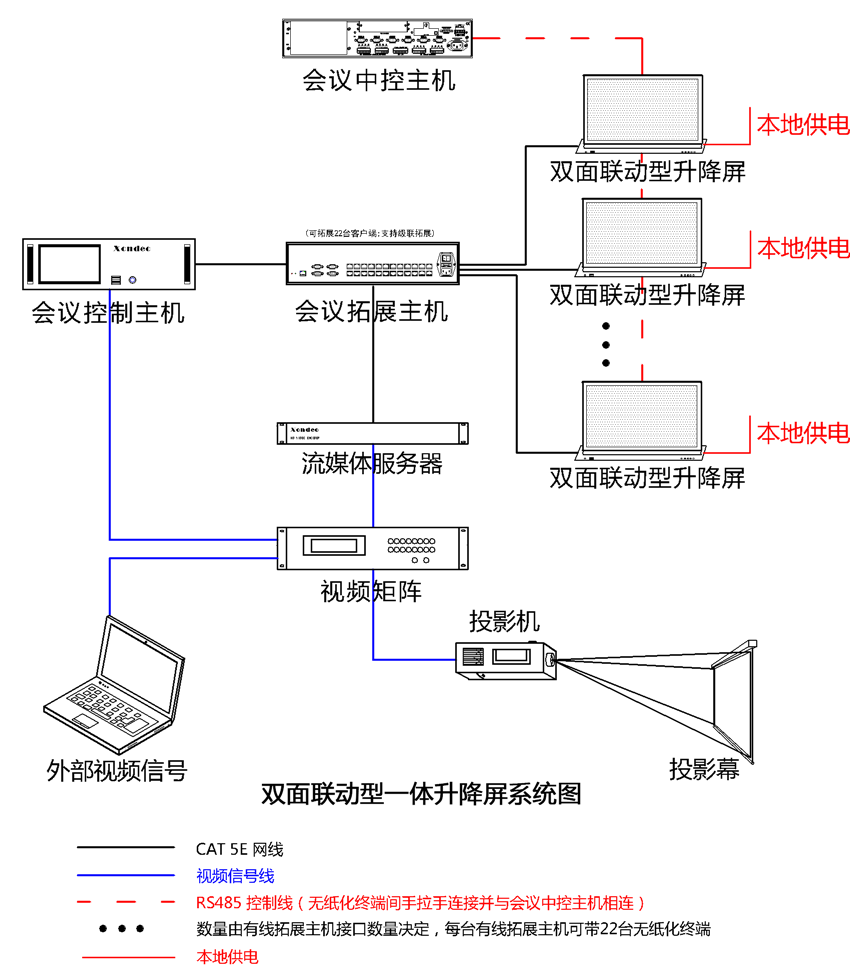3、系統(tǒng)可以擴(kuò)展第三方網(wǎng)絡(luò)中控,從而實(shí)現(xiàn)任意會(huì)議終端(經(jīng)過(guò)授權(quán))隨時(shí)對(duì)周邊設(shè)備進(jìn)行控制;第三方中控可通過(guò)RF/RS 485協(xié)議對(duì)升降進(jìn)行統(tǒng)一控制。