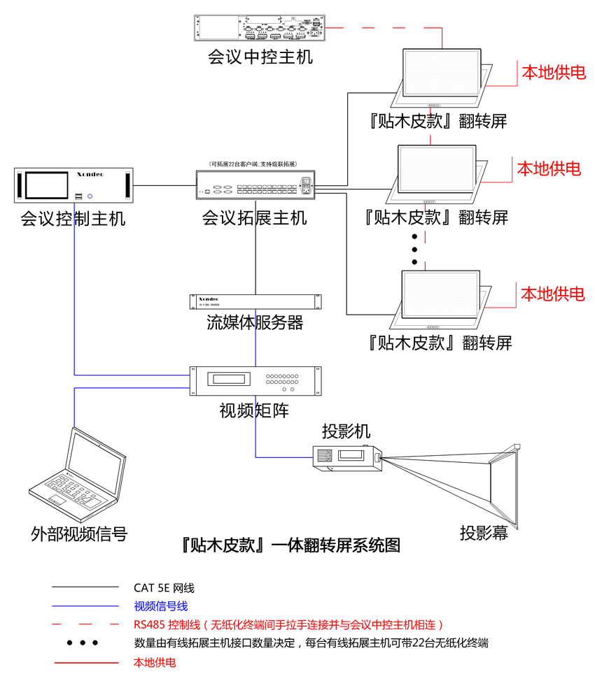 3、系統(tǒng)可以擴(kuò)展第三方網(wǎng)絡(luò)中控,從而實(shí)現(xiàn)任意會(huì)議終端(經(jīng)過授權(quán))隨時(shí)對(duì)周邊設(shè)備進(jìn)行控制;第三方中控可通過RF/RS 485協(xié)議對(duì)翻轉(zhuǎn)進(jìn)行統(tǒng)一控制。